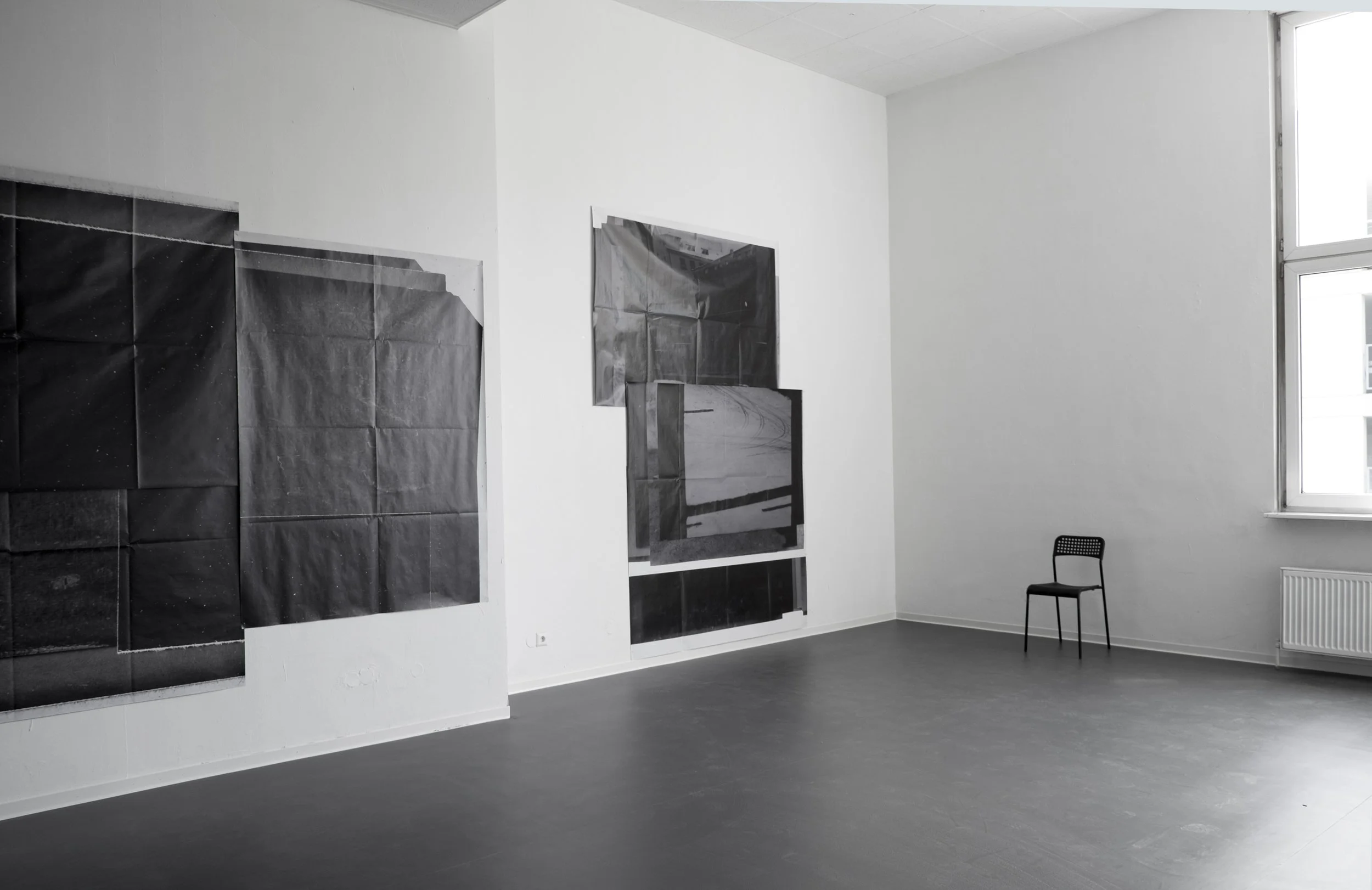 The works of 'FALTSACHEN. Die großen Papiere" are composed using basic montage processes. Large-format folded prints on paper are unfolded and reassembled to create new, discrete wall installations. The folds remain visible, showcasing the materiality with an immediate visual impact. The work is formulated in relation to the gallery space. Layerings and overlapping raise questions on visibility and the idea of showing and hiding.